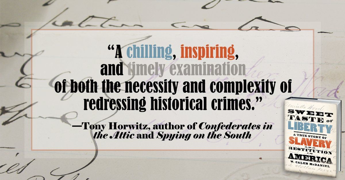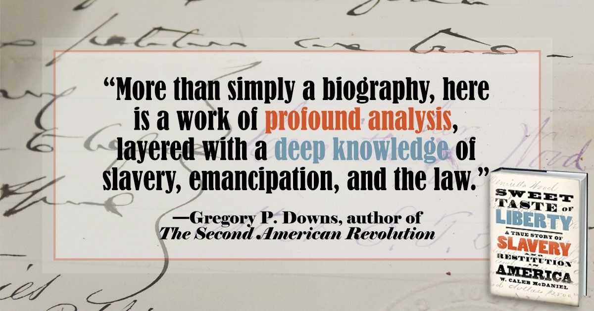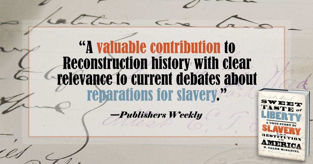 @OUPHistory @marthasjones_ "Gripping ... McDaniel tells this story engrossingly and accessibly. This is a valuable contribution to #Reconstruction #history with clear relevance to current debates about #reparations for #slavery." @PublishersWkly on SWEET TASTE OF LIBERTY, coming this week!