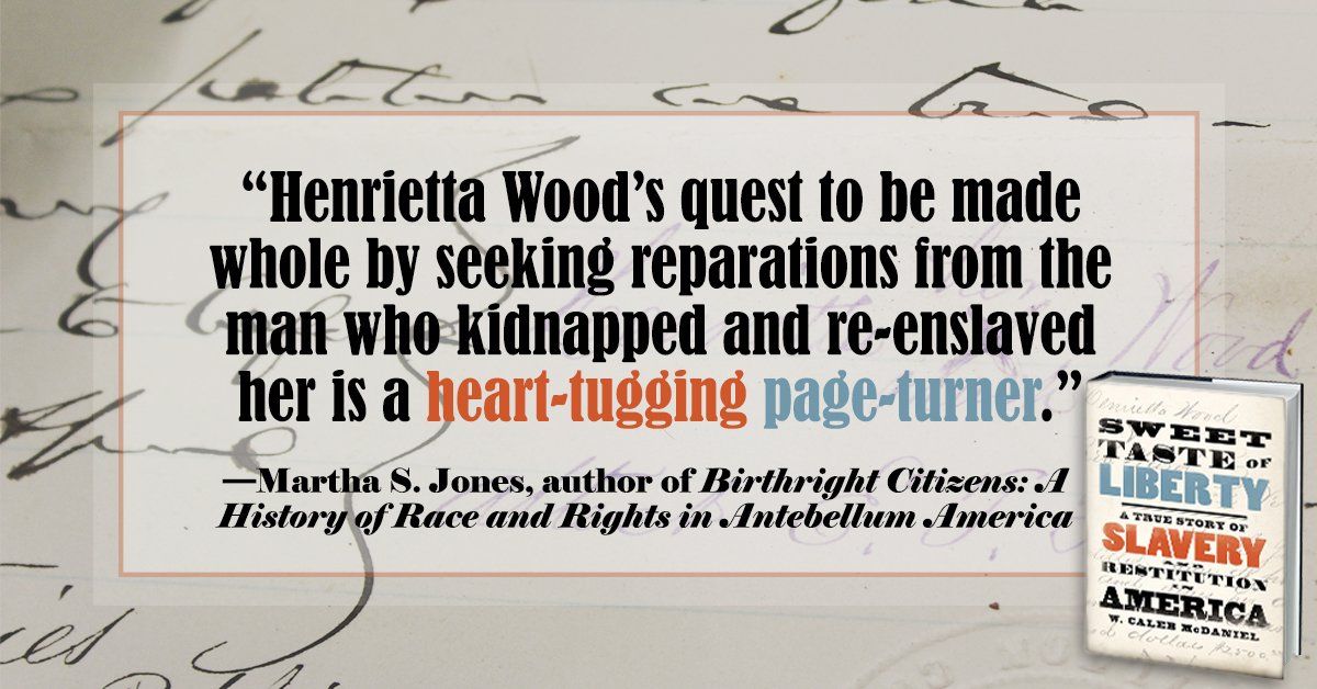 Officially out on September 4 from @OUPHistory, "Sweet Taste of Liberty" tells the story of Henrietta Wood, a formerly enslaved woman who sued for restitution for slavery after the Civil War—and won $2500. global.oup.com/academic/product/sweet-taste-of-liberty-9780190846992