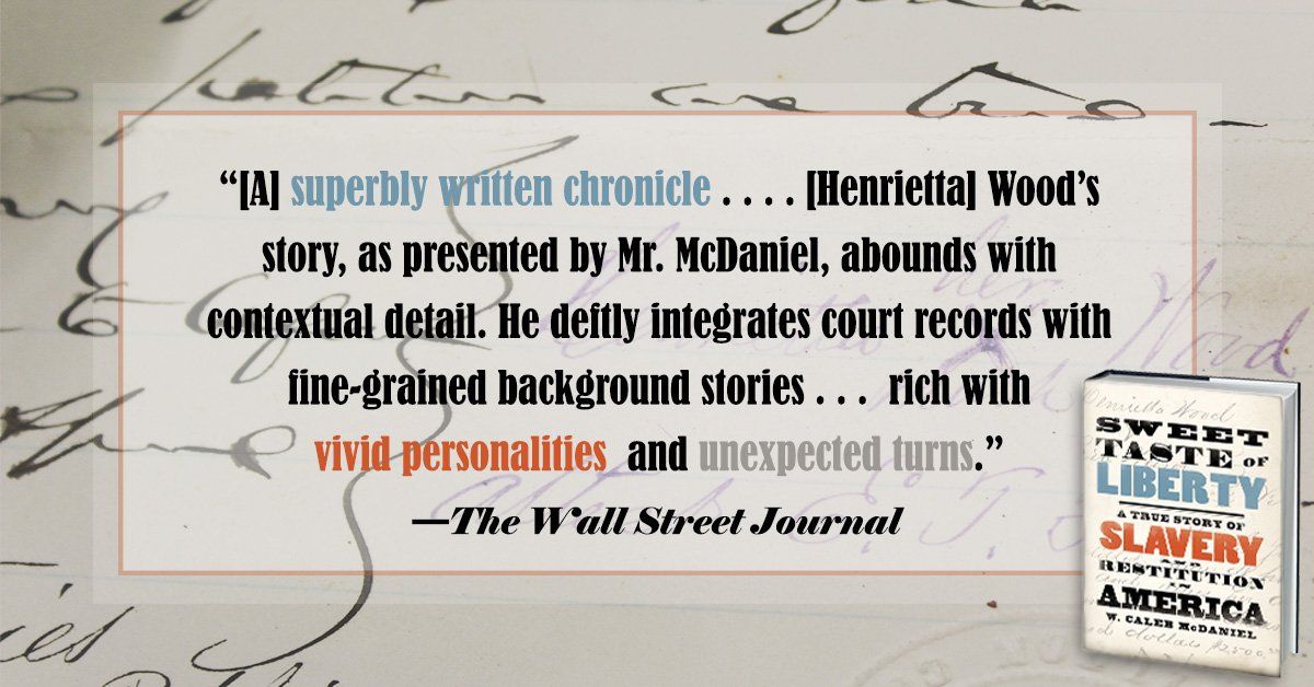 @OUPHistory @marthasjones_ @PublishersWkly @WSJ Learn more about "Sweet Taste of Liberty" and Henrietta Wood at an upcoming event near you! wcaleb.org/events