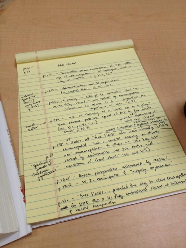 Going analog to organize thoughts for a review of David B. Davis's newest book. Anyone here read it?