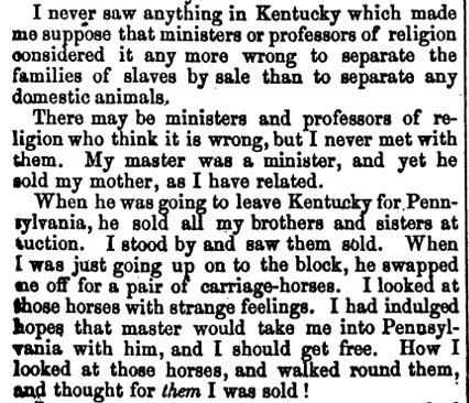 Black abolitionist & formerly enslaved man Lewis Hayden recalls being swapped for two horses.
