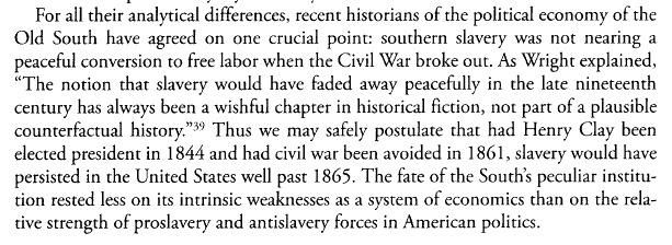 Gary Kornblith agrees. Slavery died not from economic weakness but political defeat.