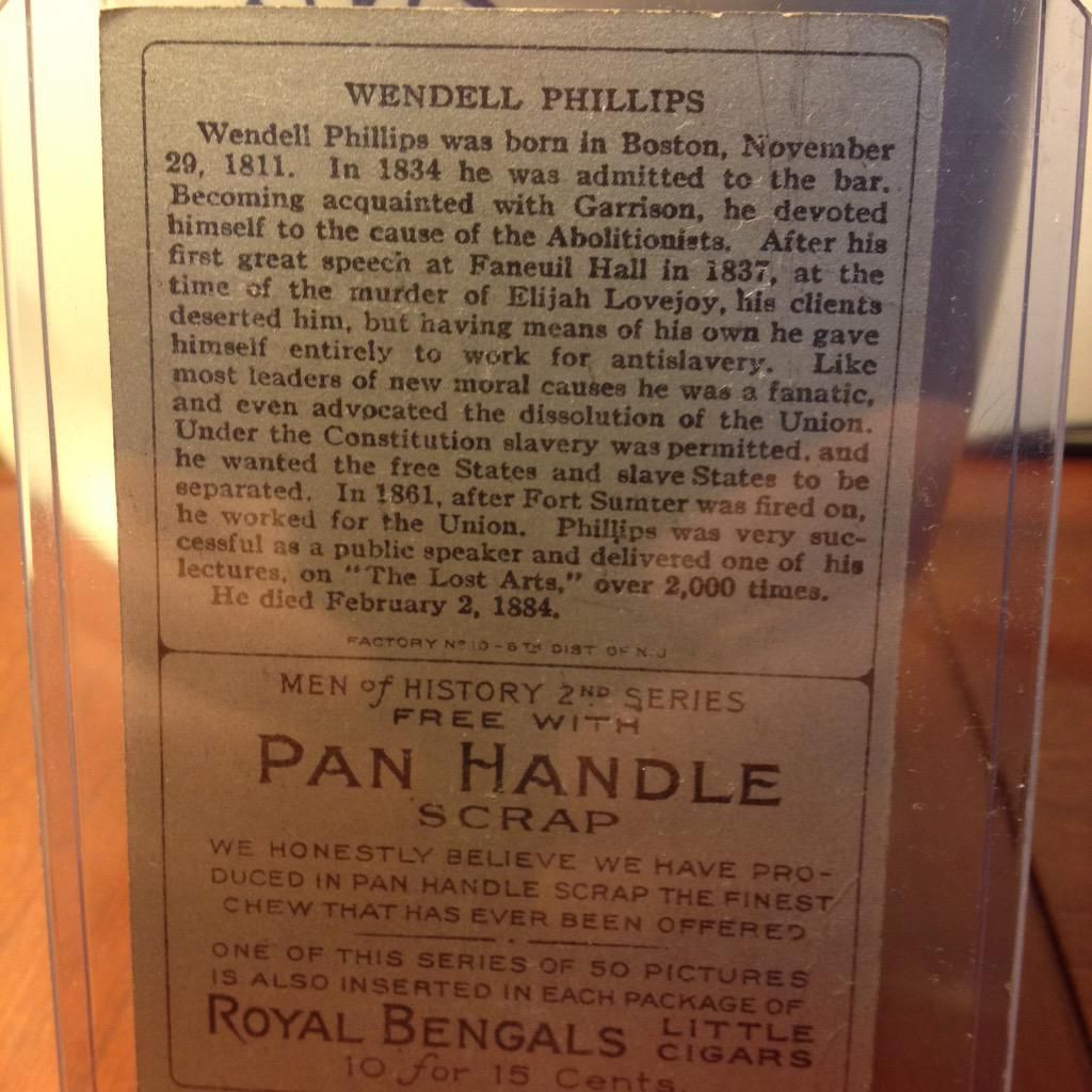 Yesterday my abolitionist trading card collection doubled. The new Phillips card came from old cigar box.
