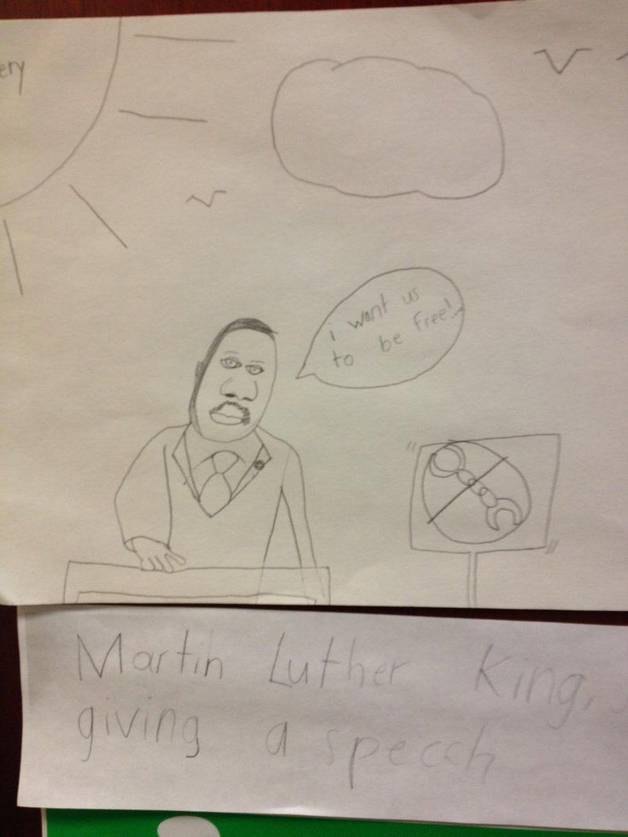 My daughter's drawing of #MLK greets me every day on the door to my office.