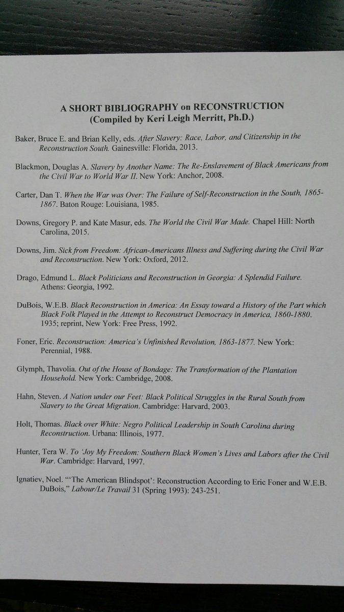 If I may, here's a short (2 page) bibliography on #Reconstruction. (1of2)