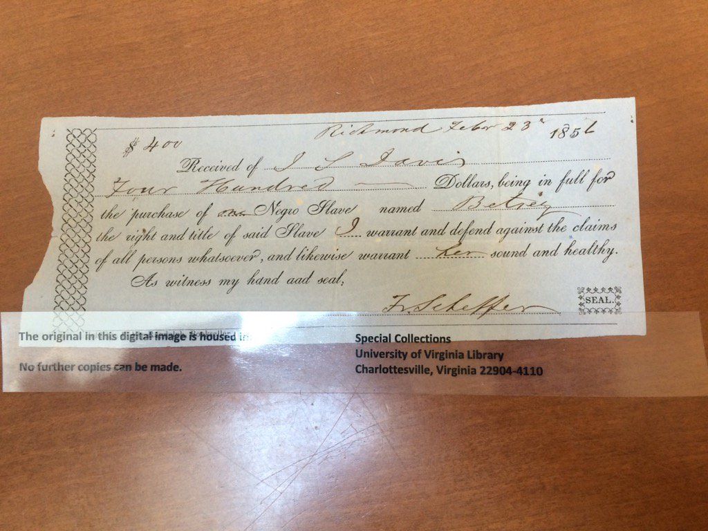 1856 purchase of enslaved woman Betsy by John Staige Davis.