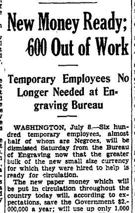 Tidbit: in 1920s, Treasury hired 600 temps, many black, to engrave new Jackson bills. (NY Amsterdam News, 7/10/29)